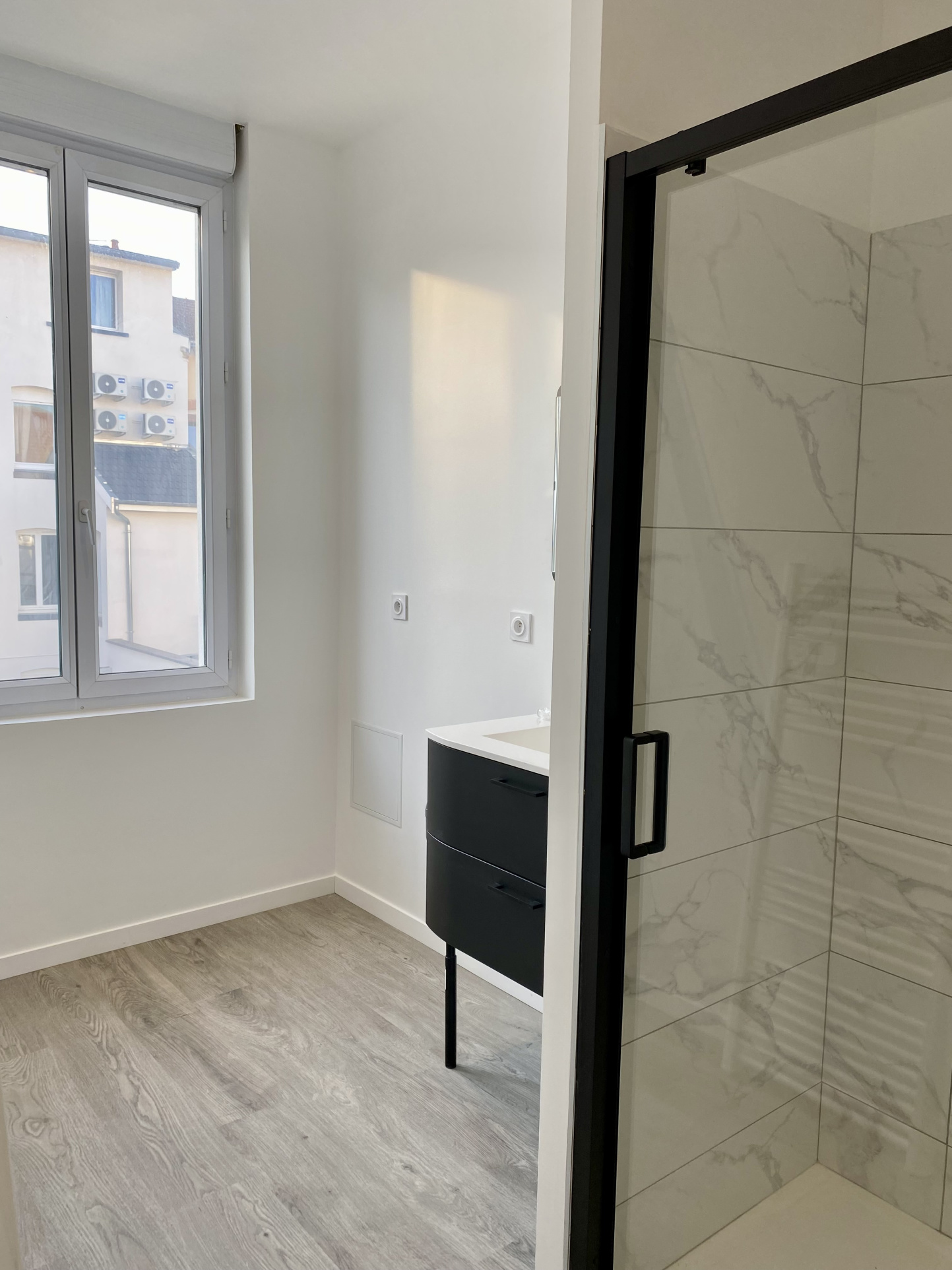 Reims - Secteur Jean Jaurès / Jamin. A vendre, dans une copropriété rénovée, un appartement triplex de type 4 avec accès et cour pivatifs, d'environ 73m2 (env. 91m2 au sol), comprenant au rez-de-chaussée une entrée avec cuisine ouverte sur la pièce à vivre (env.30m2), pièce de rangement, une chambre ; au premier étage un palier qui dessert des wc séparés, un bureau, une salle de douche ; au deuxième étage une grande chambre avec salle de douche. Appartement entièrement rénové - Classe énergétique C - Calme, en fond de cour de la copropriété avec cour privative close - Proche centre ville - Proximité commerces et transports en commun. Agence Colbert Immobilier, spécialiste de la vente sur Reims, secteur Forum, centre ville, gare, Jean Jaurès, Laon. Contact : 29 rue Colbert à Reims - 03.26.05.13.53 - vente@colbert-immobilier.com Les informations sur les risques auxquels ce bien est exposé sont disponibles sur le site Géorisques