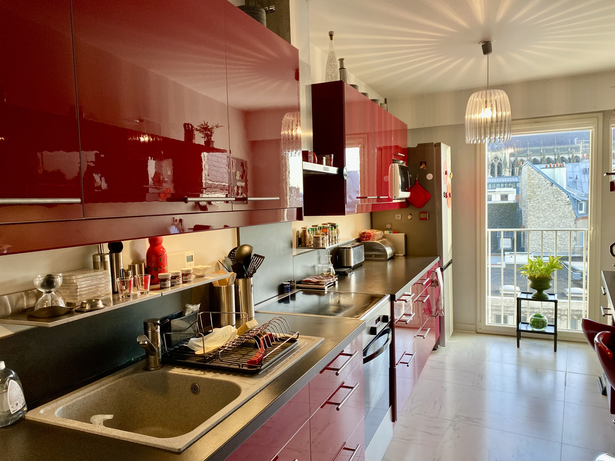 REIMS - RARE EN HYPERCENTRE – DERNIER ÉTAGE AVEC TERRASSE – SECTEUR FORUM À deux pas de la très recherchée Place du Forum, en plein cœur de Reims, découvrez ce bien rare situé au dernier étage d’une copropriété avec ascenseur. Un agréable appartement de type 4 d'environ 95 m² bénéficie d’une configuration idéale. Il se compose d’une entrée avec rangements, d’un double séjour lumineux d’environ 35 m² ouvrant directement sur une agréable terrasse offrant une vue dégagée sur les toits rémois. Un extérieur rare en hypercentre, propice aux moments de détente. L’espace nuit comprend deux chambres, dont une grande chambre bénéficiant d’une vue exceptionnelle sur la Cathédrale Notre-Dame de Reims, véritable privilège en cœur de ville. Vous trouverez également : Une cuisine indépendante, une salle de douche, une pièce noire idéale pour le rangement, des placards intégrés, une cave, un double garage avec porte automatique et une prise électrique reliée au compteur de l'appartement. Cet appartement est lumineux, double exposition car traversant, au cœur du centre ville, situé au dernier étage, dans un environnement premium, à proximité immédiate des commerces, restaurants et transports.Ses atouts :- Hyper centre de Reims- Dernier étage- Terrasse- Vue cathédrale- Double garage- Copropriété avec ascenseur Un appartement idéal pour une résidence principale en centre-ville ou un investissement patrimonial à forte valeur. À visiter sans tarder. Agence Colbert Immobilier, spécialiste de la vente sur Reims, centre ville Hôtel de ville, Place du Forum, Lundy, Boulingrin, Jean Jaurès, Paix. Contact : Colbert Immobilier 29 rue Colbert à Reims - vente@colbert-immobilier.com - 03.26.05.13.53. Les informations sur les risques auxquels ce bien est exposé sont disponibles sur le site Géorisques